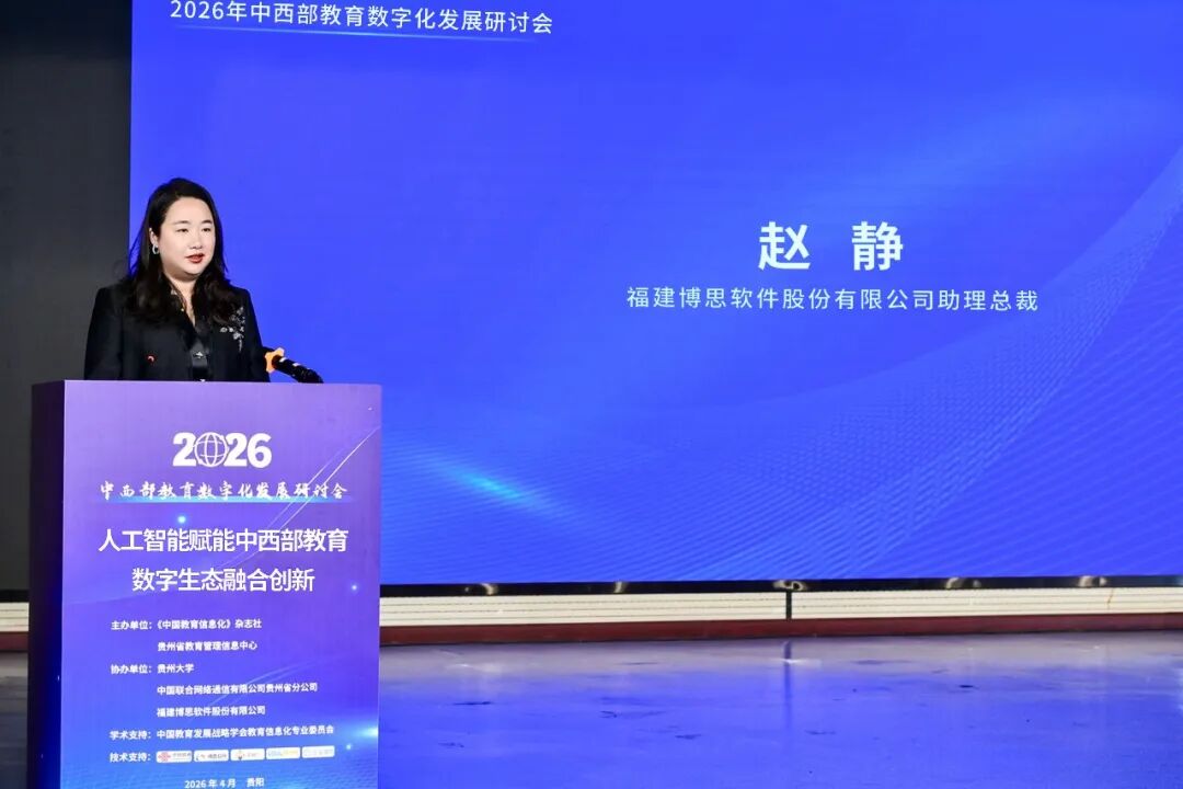4月23日,2026年中西部教育数字化发展研讨会在贵阳召开。本次研讨会由《中国教育信息化》杂志社与贵州省教育管理信息中心共同主办,贵州大学、中国联通贵州分公司、博思软件共同协办,以“人工智能赋能中西部教育数字生态融合创新”为主题,汇聚了来自教育行政部门、高等院校、职业院校、中小学校的信息化负责人、技术人员及信息技术教师等,共同探讨人工智能教育的有效路径,以及以教育数字化助推中西部教育优质均衡发展和内涵式发展的方法论。贵州大学党委常委、副校长王锦荣在致辞中表示,教育数字化是国家教育强国战略的重要引擎,是破解发展不均衡、实现教育公平与质量双提升的关键举措。贵州大学持续加快数字校园建设步伐,推进数字校园一卡通系统全面升级及一表通数据基座建设,为教育教学、科研管理和师生服务提供了坚实的数字底座。中共贵州省委教育工作委员会副书记李军表示,人工智能技术的日益成熟和普及,通过构建纵向贯通、横向联通的数字教育体系,让优质教育资源跨越山海、直达课堂,让中西部学生享有与东部同频的教育机会。博思软件助理总裁赵静表示,博思软件深耕数字票证、智慧财政等领域,已深度服务全国超3万所中小学、300多所高校和职业院校,始终以数字化力量服务国家战略、助力教育发展。她结合实践,分享了助力教育数字化转型的路径思考:第一,以一体化平台为支撑,聚焦校园食堂、校服、教辅材料数字化整改,构建智慧管理新范式;第二,以全链路数字化为抓手,筑牢教育资金安全防线,赋能资源优化配置;第三,以数据要素为驱动,打造“用得起、用得好、有实效”的中西部教育数字化方案。在主题演讲环节,博思软件资深业务专家荚伟围绕构建新一代校园后勤智慧生态圈展开深度分享。当前,教育数字化的发展呈现出清晰的阶段性特征。“上半场”实现了教学信息化的全面覆盖,“下半场”的核心任务则是聚焦校园后勤与生活服务,补齐民生短板。工作重心正从硬件建设转向服务体验,从分散的人工管理转向全域协同的AI智理,实现从事后整改向事前预警的根本性转变。针对传统后勤治理模式中数据分散、监管滞后、流程繁琐、合规压力大、信息不透明与服务不便捷等痛点,博思以AI大模型和数据中台为核心,结合物联网感知体系,构建了全新的后勤智理底座。该底座具备智能风控、数据溯源、自动核算与决策分析四大核心能力,以统一的技术架构全面赋能缴费、食堂、校服三大业务场景,彻底打通数据壁垒。基于这一技术底座,博思构建了“四位一体”的智慧生态圈,连接教育局、学校、家长与供应商。通过聚合支付、电子票据、AI物联等底层能力,实现监管可视、管理高效、服务便捷、合规无忧与民生满意的生态目标,真正做到共建共治共享。在智慧缴费方面,通过AI实现智能核价、自动对账与风险预警,确保收费合规透明,对账效率提升90%;在校园食堂监管方面,依托AI明厨亮灶、智能溯源和生成式AI营养食谱,结合28项核心指标的智能预警,实现食材全链路可追溯与风险分级管控;在校服采买方面,通过供应商资质自动审核、智能比价和全链条溯源,确保采购透明合规。这三大场景通过数据中台互联互通,形成业务闭环,教育局可通过一个驾驶舱实现全域后勤数据的一屏统管,自动预警风险并形成闭环督办。截至目前,博思智付校园方案已在全国多个省市落地,服务数千万学生家长,资金合规率达100%,家长满意度超过95%。未来,随着生成式AI、数字孪生和轻量化部署的持续推进,校园后勤管理将向更智能、更普惠的方向不断迈进。在基础教育分会场上,贵州省六盘水市六枝特区教育局党委书记、局长蔡敏做了“以数智赋能打造校园食品安全智慧监管新模式”的主题演讲,阐述了以人工智能、物联网、大数据技术重构校园食品安全监管体系的地方创新实践,并详细介绍了“六枝特区校园餐综合管理平台”如何实现校园餐饮全生命周期的数字化、智能化治理。该平台由教育局、财政局、市场监管局等多部门协同推进,博思致新提供技术支撑,构建了跨部门数据共享、全流程闭环管理的校园餐数字治理新范式。本次研讨会除主旨演讲和分会场交流外,还设置了教育数字化成果展示、典型案例分享、实地考察等环节,全面呈现了中西部教育数字化建设的最新进展与创新实践。教育数字化,是打破时空界限、促进优质资源共享的钥匙,是推动教育公平与质量双提升的引擎。博思软件将继续以教育数字化之力,助力夯实中西部教育发展之基,为加快建设教育强国、办好人民满意的教育贡献智慧与力量。