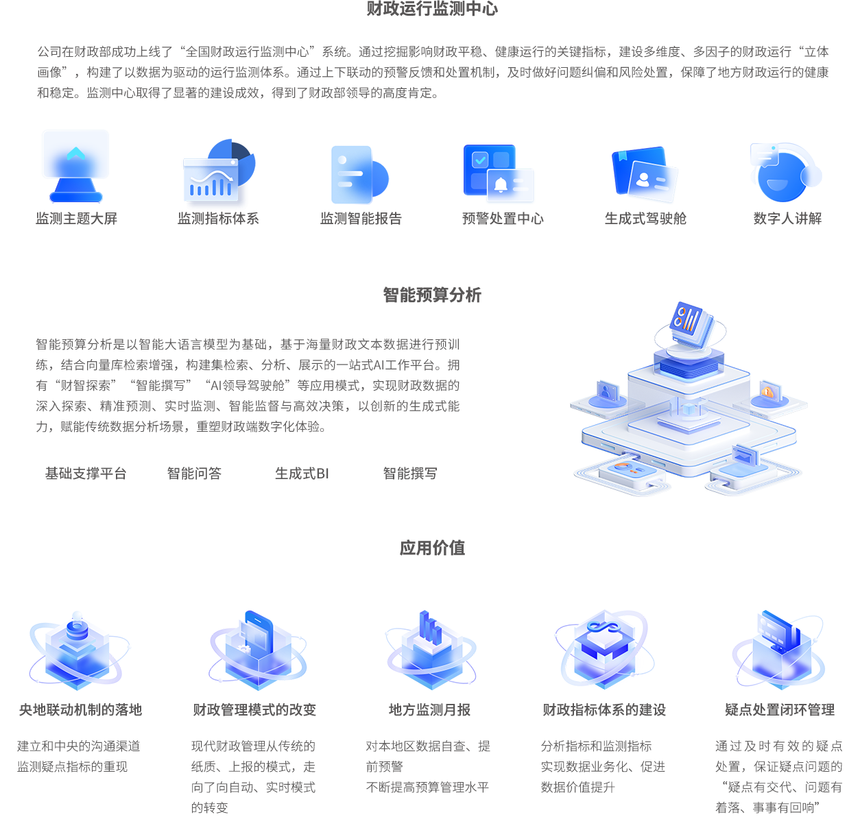以预算管理一体化数据为基础,选取重点领域热点问题开展财政运行监测,及时掌握全省(市)财政运行状况,剖析运行风险,对财力薄弱风险较高的地区重点关注,为财政决策妥善处置风险隐患提供数据支撑。