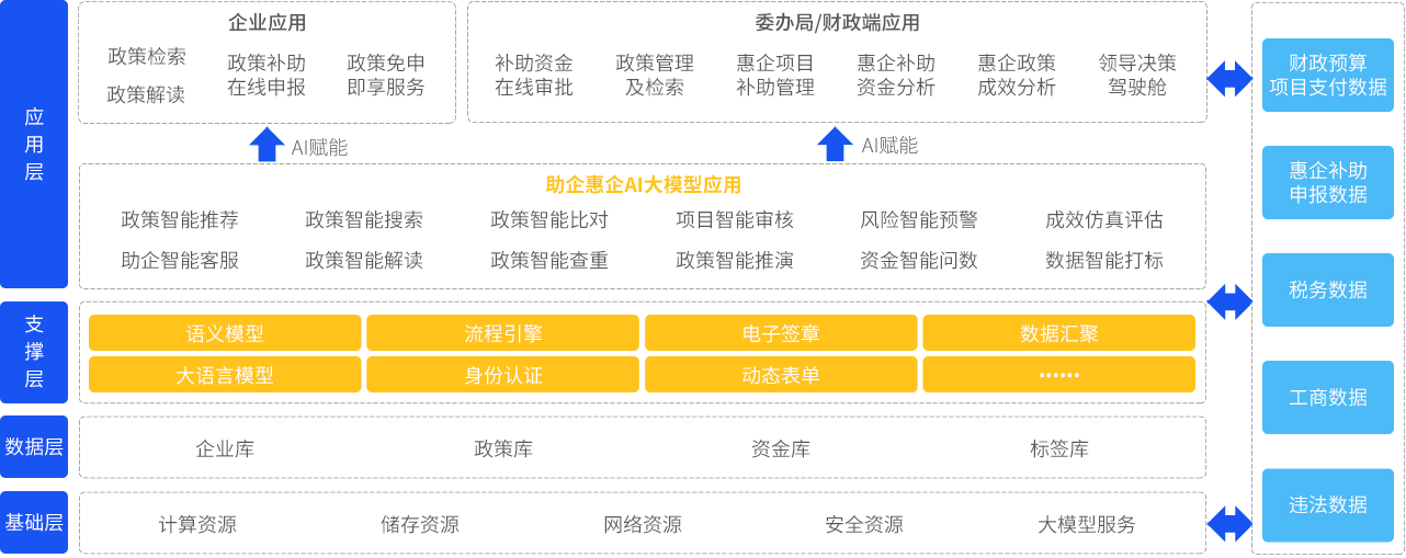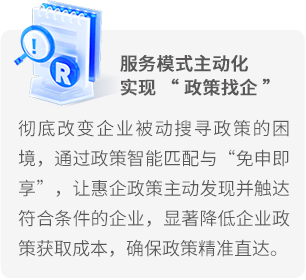 平台深度融合大数据与人工智能技术,构建一站式智能服务生态。精准化解企业政策获取难、申报繁等痛点,推动实现“政策找企业”。